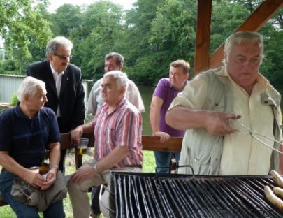 3: Landrat Harald Altekrüger im Gespräch mit einigen Gästen am Rande des Grillstandes.